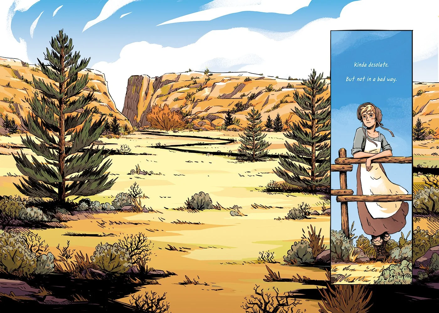 The Trek is a graphic novel that explores the relationships between people in a close-knit community that becomes disrupted. The story takes place over a five-day pioneer trek, an event organized by 16-year-old Codey's local church. Codey is annoyed to spend the last days of summer break in hot and dusty Wyoming, re-enacting the journey of the Mormon handcart pioneers. In the midst of this, she is having a crisis of faith which threatens her connection to the only community she has ever known.